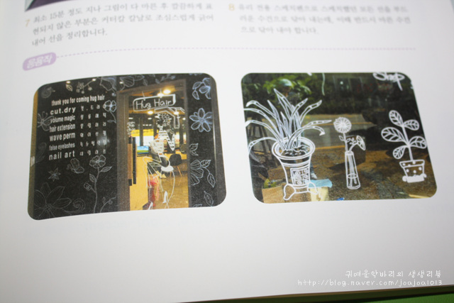 실제 카페나 커피전문점 등의 유리나 파티션등에 그림을 그리거나