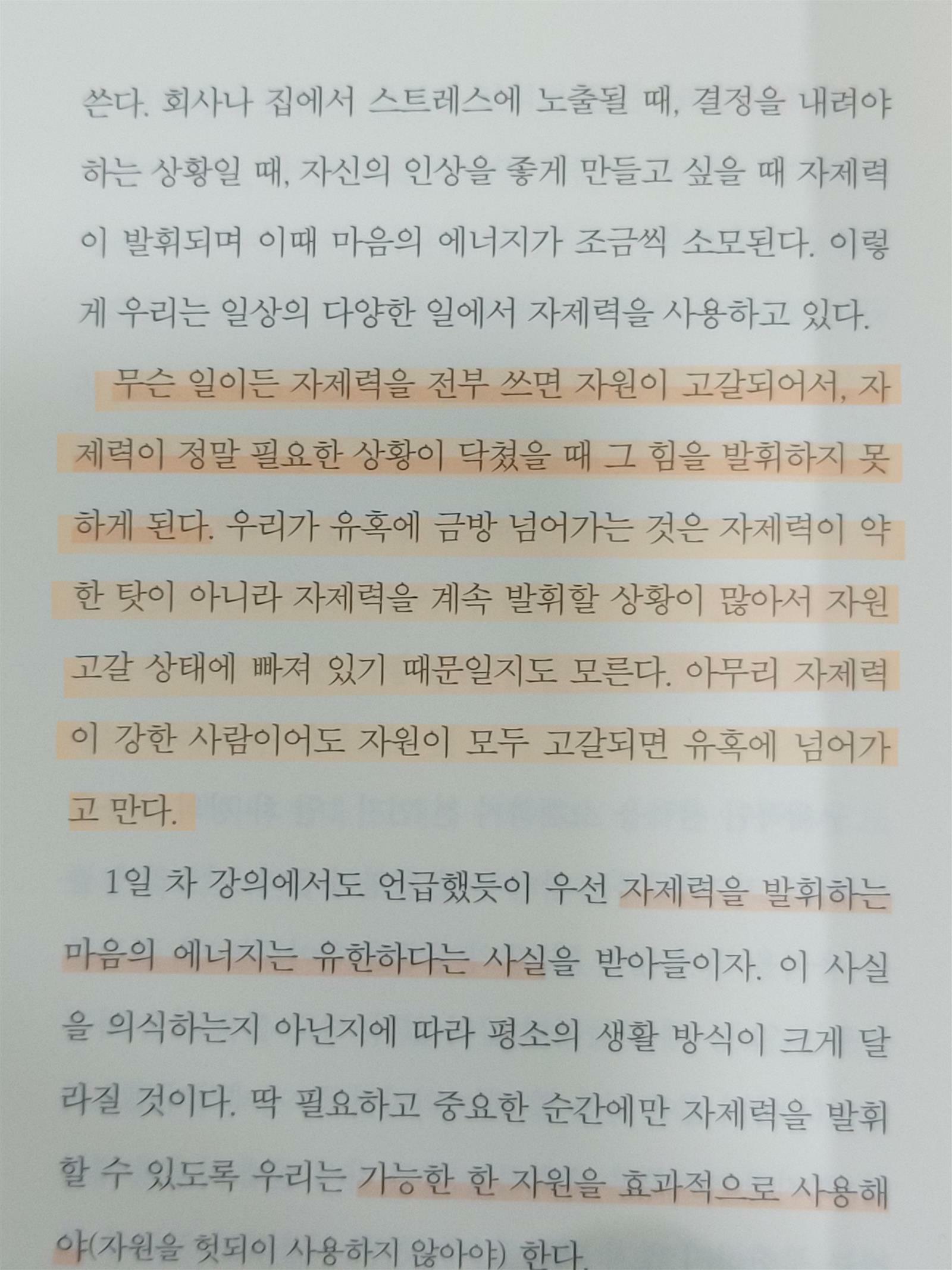 자제력을 헛되이 쓰지 않는다고 의식하면서