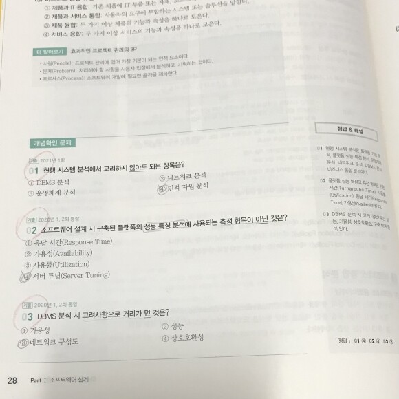 또한 이번 에듀윌 정보처리기사 필기 교재는 이론부분에 개념확인을 할 수 있는 문제들이 수록되어 있어요. 소제목별로 어떤식으로 문제가 나오는지 확인할 수 있어서 괜찮더라고요. 게다가 제대로 공부했는지 한번 더 확인할 수 있어서 공부하는데 도움이 많이 되었어요.