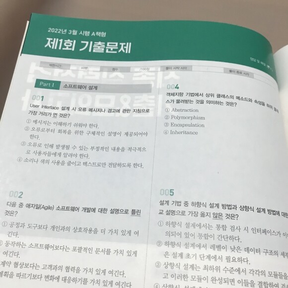 정보처리기사 필기 교재는 3개로 나눠서 공부할 수 있게 분철되어 한권씩 갖고 다니며 공부할 수 있어서 좋아요. 전 전공자다보니 공부할때 예전에 배웠던 내용들이 기억나서 쉽게 공부할 수 있었어요. 그래도 에듀윌 교재는 정말 쉽게 설명해주고 있어서 비전공자들도 공부하기 괜찮더라고요! 그리고 교재 구성도 너무 알찼어요!