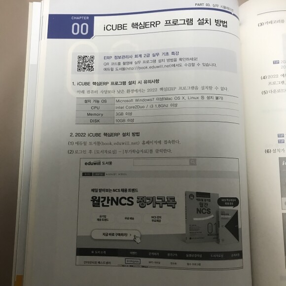 그리고 에듀윌 ERP 정보관리사 교재에는 핵심 ERP 프로그램 설치 방법부터 설명되어 있어요. 또한, QR 코드를 통해 실무 프로그램 설치 방법을 확인할 수 있으니 이 강의를 통해 설치 방법을 확인하는 것도 도움이 되실 거예요.