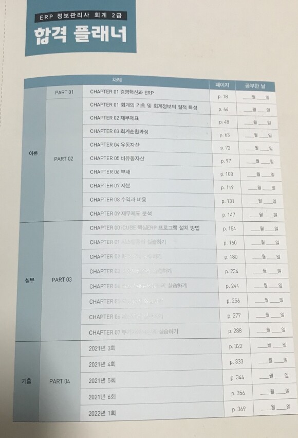 먼저 ERP 정보관리사 책의 구성을 살펴볼게요.