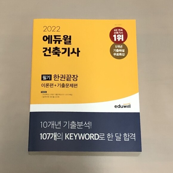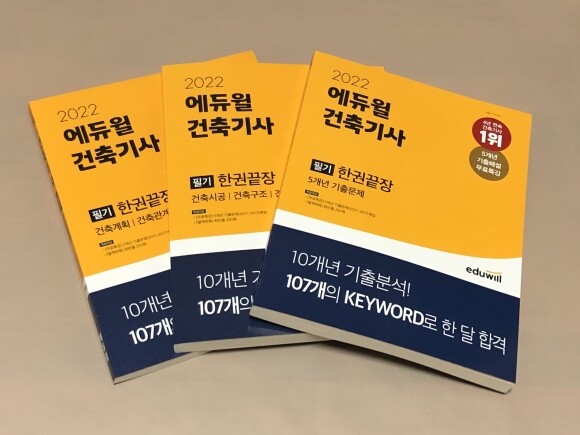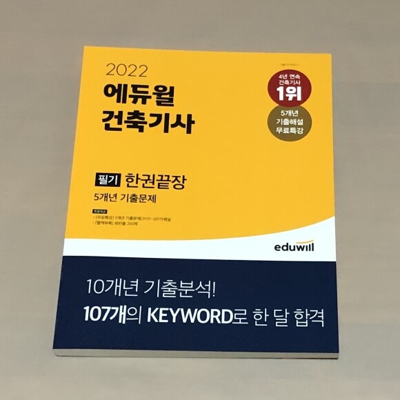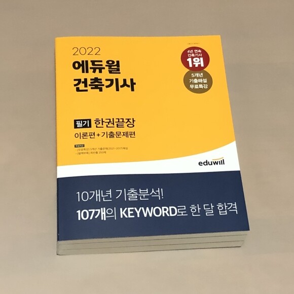 에듀윌 건축기사 필기 교재는 건축기사 국가 기술 자격증을 취득하기 위한 필기 수험서에요. 건축기사 교재는 최신 출제 기준과 10년 기출문제를 분석해서 이해하기 쉽게 이론과 기출문제를 107개 키워드로 정리했어요. 또한, 에듀윌 건축기사 필기 교재는 다양한 혜택을 제공해 주고 있어 건축기사 시험을 독학으로 공부하기에 제격인 교재에요.