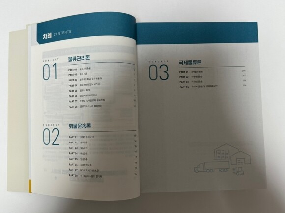 에듀윌 먼저 물류관리사 교재 1교시 목차를 살펴볼게요. 에듀윌 물류관리사 교재 1교시 책은 3개의 파트로 나눠져 있어요.