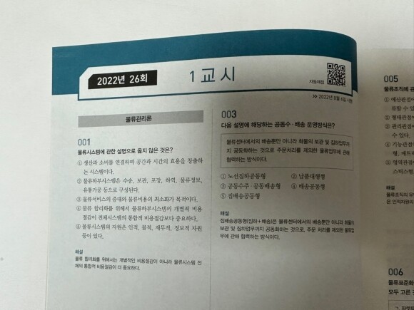 이 부분은 시험을 본다고 생각하고 실전처럼 연습할 수 있다는 점이 좋았어요. 또한, QR코드의 자동채점 및 성적 분석 서비스가 있어 이용하시면 많은 도움이 되실 거예요. 틀린 문제는 상세한 해설로 선지 분석, 관련 이론으로 편리하게 이론 보충학습까지 가능하니 최고라고 말할 수 있었어요.