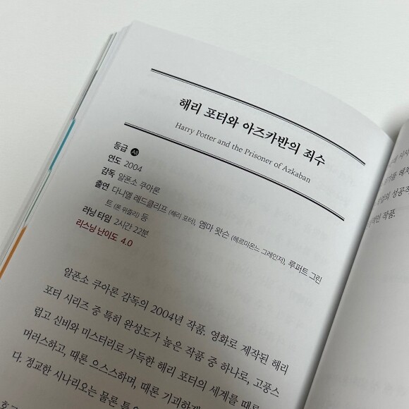 여기까지 『재미있어야 영어가 들린다』 책에 대해 소개 드렸는데요. 이 책은 영어를 재밌게 배울 수 있고 수년간 영어를 공부하면서도 영어가 잘 들리지 않았는데 그러한 단점들을 보완시킨 책이라고 말할 수 있어요. 동시에 재미있는 영어권 작품들인 웹 소설/베스트셀러 오디오북, 애니메이션, 미드, 영화 등을 난이도별로 소개해 주는 콘텐츠 가이드북이에요. 또한, 콘텐츠 소개에 앞서 간략하게 학습 플랜까지 수록되어 있어 영어실력을 향상시키고자 하는 분들에게 딱! 제격이었어요. 요즘은 너무 많은 콘텐츠로 인해 어떻게 공부할지 감이 안 잡혔는데 이 책을 통해 조금 쉽게 다가갈 수 있는 작품들을 알게 돼서 유용했어요. 또한, 난이도별로 표시되어 있어 스스로의 영어실력에 맞게 난이도를 조절할 수 있어서 좋아요! 영어실력을 향상시키고 싶으신 분들이나 영어에 재미 붙이고 싶으신 분들께 추천드려요!
