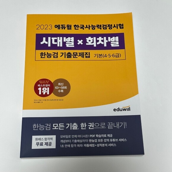 오늘은 에듀윌 한국사능력검정시험 기출문제집인 에듀윌 『시대별 x 회차별 한능검 기출문제집 기본편(4/5/6급)』 책을 소개해드리도록 할게요.