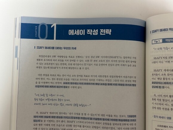 다음으로는 SSAFY 맞춤 에세이 작성 전략이 수록되어 있는데요.
