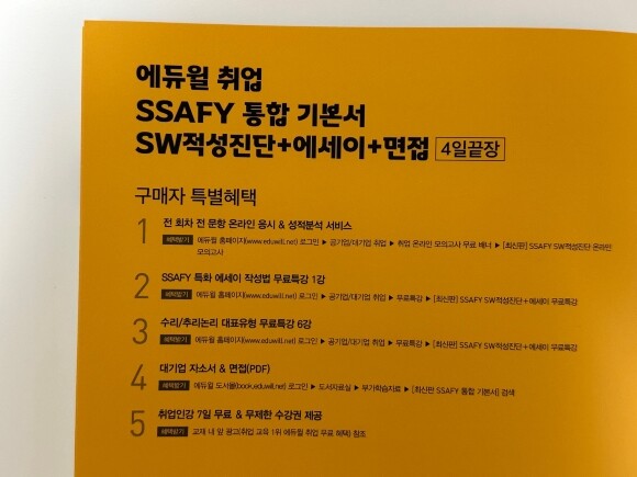 먼저 에듀윌 SSAFY 통합 기본서 혜택을 알아보도록 할게요.