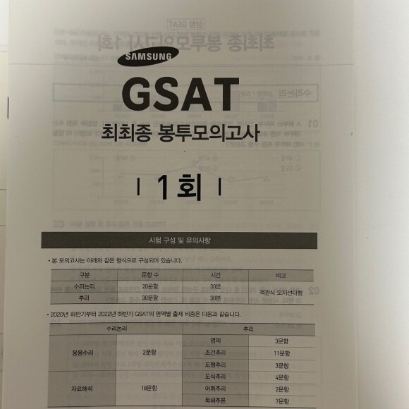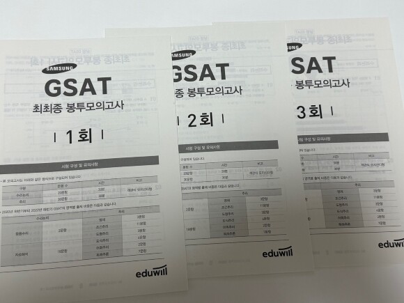 오늘은 에듀윌 취업 GSAT 삼성직무적성검사 최최종 봉투모의고사를 소개를 드리도록 할게요.