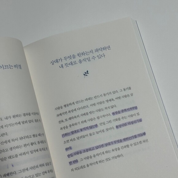 PART 1은 사람의 마음을 움직이기 위해 알아야 되는 것들에 대한 내용들이 담겨 있어요. 요즘 사회생활에 힘겨움을 느끼다보니 이 책이 정말 도움이 되었는데요. '할 말과 안 할 말을 구분하라'라는 파트와 현명한 사람일수록 말을 짧게 한다는 부분이 가장 도움이 많이 되었어요. 그래서 그런지 이 책을 읽고 난 뒤 쓸데없는 얘기는 잘 안하게 되고 듣는 위주의 생활을 하게 되었어요.