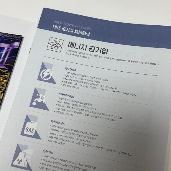 저도 책을 구입한 후 알게된 정보인데요. 에듀윌 NCS 교재에서는 스페셜 가이드로 공기업 최신 채용 정보를 제공해줘서 정말 알차더라고요. 한국전력공사, 한국수력원자력, 한국가스공사 등 다양한 공기업의 채용정보들이 제공되서 유용했어요. 따로 구글링하지 않고 에듀윌 NCS 문제집 하나로 다양한 공기업의 채용 정보를 알게 되서 유용했어요.