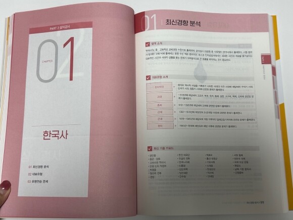 최신 경향 분석을 보면 한국사에서는 10문항이 출제되고 있는 걸 확인할 수 있어요. 이 부분에서는 최신 기출 키워드를 제공해 줘서 가장 많이 출제된 부분을 파악할 수 있어 포스코 인적성 시험공부하는데 도움이 되실 거예요.