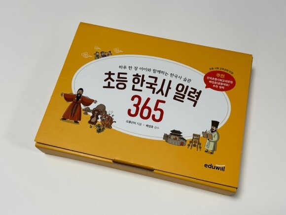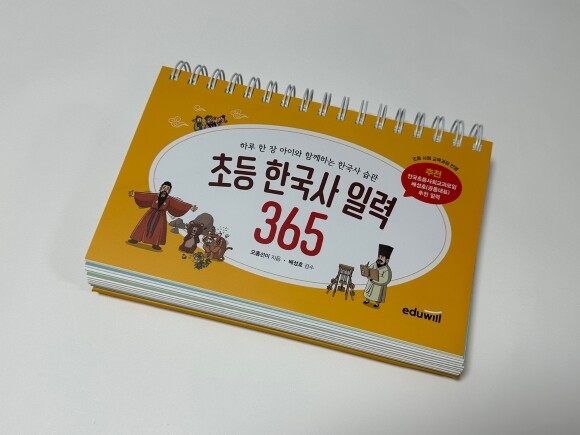 여기까지 정영욱 작가님의 일일 초등학생 한국사 일력 『초등 한국사 일력 365』을 소개해 드렸는데요. 한국사의 흥미로운 365개 주제를 그림과 사진으로 함께 구성하여 한국사를 처음 접하는 아이들에게 호기심을 불러일으켜 줘요. 또한, 짧은 형태의 설명으로 한국사 공부의 재미를 느끼게 해줘서 초등학생이 공부하기에 적합하더라고요! 저 같은 경우 초등학생인 조카에게 선물해 줬더니 매일매일 하루에 한 장씩 날짜에 맞춰 읽고 있다고 하더라고요. 한국의 다양한 설화와 신화, 주요 위인들, 한국사를 뒤흔든 사건, 유네스코 세계 유산 등 다양한 주제를 하루에 한 장씩 공부할 수 있어 초등 한국사 공부하기에 제격이에요. 초등학생 한국사 공부를 확실히 책임져줄 에듀윌 『초등 한국사 일력 365』으로 부모님과 함께 자녀들과 1년 동안 공부해 보시는 건 어떨까 싶어요.