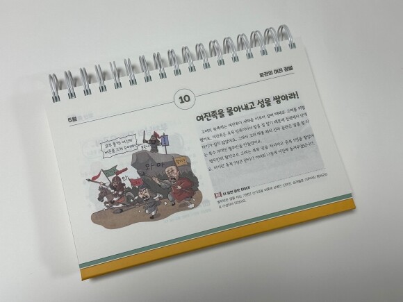 5월에는 초등학생이 꼭 알아야 되는 한국사를 뒤흔든 역사적 사건들이 하루에 한 장씩 설명되어 있어요. 계유정난, 윤관의 여진 정벌 등 꼭! 알아야 되는 역사적 사건들이 담겨 있어요.