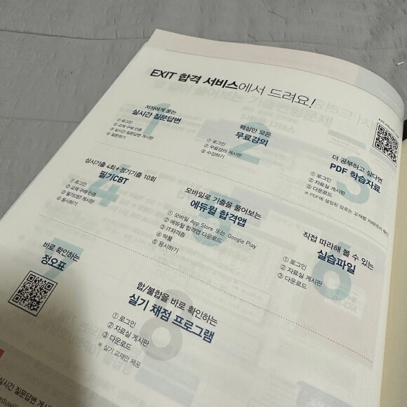 에듀윌 IT 문제집들은 EXIT 합격 서비스를 제공해주고 있는데요. 에듀윌 컴활 2급 필기 문제집에서도 제공해주고 있어 유용하게 사용하고 있어요. 핵심만 모은 무료 강의로 이해가 잘 가지 않은 부분도 강의를 수강하며 이해할 수 있었고 CBT로 기출문제를 풀 수 있어서 시험 대비로도 완벽했어요. 또한, 에듀윌 합격앱으로 모바일로도 기출을 풀며 자유자재로 공부를 할 수 있다는 점이 메리트 있었어요.
