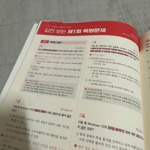 반복 학습한 횟수를 직접적으로 표시할 수 있어 공부하고 싶은 욕구가 상승해서 괜찮더라고요! 또한, 가장 빠른 합격 비법 등 기출분석 기반으로 학습 방향을 제시해주고 문제 유형별 학습 포인트가 명시되어 있어 공부하시는데 많이 도움될거라 단언해요. 그리고 출제 키워드는 형광펜으로 명시되어 있고, 정답은 빨간색으로 표시되어 있어 키워드로만 답을 보고 쉽게 빠르게 학습할 수 있어 좋았어요.