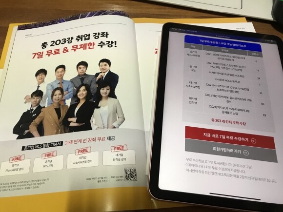 에듀윌 NCS 혜택 중 하나가 교재 연계 전 강좌 무료 수강이 가능하다는 건데요공기업 NCS 통합 기본강의부터 입문 특강대기업 자소서 및 면접 트레이닝 한 달 완성대기업 인적성 GSAT 기본 강의까지 다양한 강의를 무료로 제공해 줘서 공부할 때 유용하게 사용하실 수 있어요다들 책으로만 공부하시는 경향이 있는데 에듀윌에서 제공하는 혜택을 100% 활용하시면 시너지 효과를 내실 수 있으실 거라 생각 들어요참고하셔서 혜택을 이용하셨으면 좋겠어요!