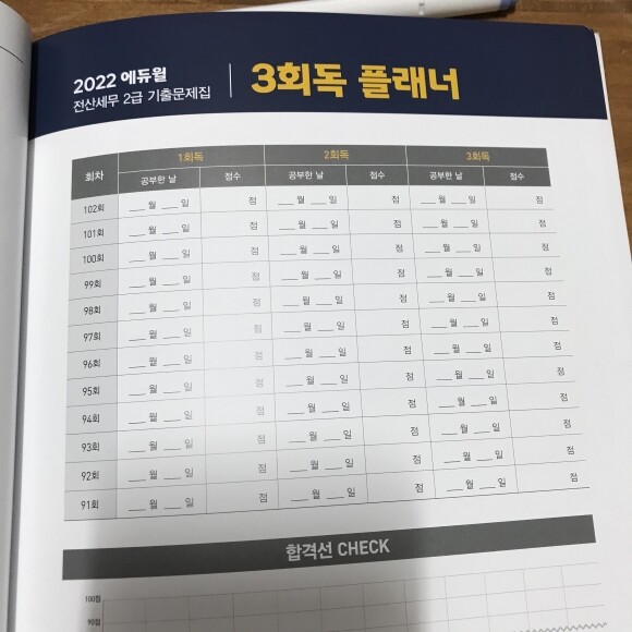 회계를 잘 모르는 분들도 에듀윌 책 한 권으로 전산 세무 2급 독학으로 마무리하기 정말 좋은데요게다가 3회독 플래너를 제공해 줘서 공부량과 진도를 확실하게 체크할 수 있고 부족한 부분까지도 반복학습을 통해 완전하게 이해할 수 있다는 점이 메리트 있었어요!