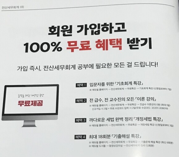 게다가 에듀윌 전산세무 2급 기출문제집에서 제공해 주는 혜택들이 엄청나서 최소 비용으로 최대 효과를 내실 수 있으세요저도 이번에 전산세무 2급 시험을 준비 중인데 생각보다 어려워서 고생하고 있었는데 기출문제 인강으로 인해 틀린 문제들은 이해가 가고 머릿속에 쏙쏙 들어가 도움이 많이 되었어요학원을 다니지 않고 전산세무 2급 독학으로 다들 혜택까지 100% 활용해서 에듀윌 전산세무 2급 자격증 취득하시길 바랄게요전산세무 2급 공부는 에듀윌 기출문제집 추천해드려요.