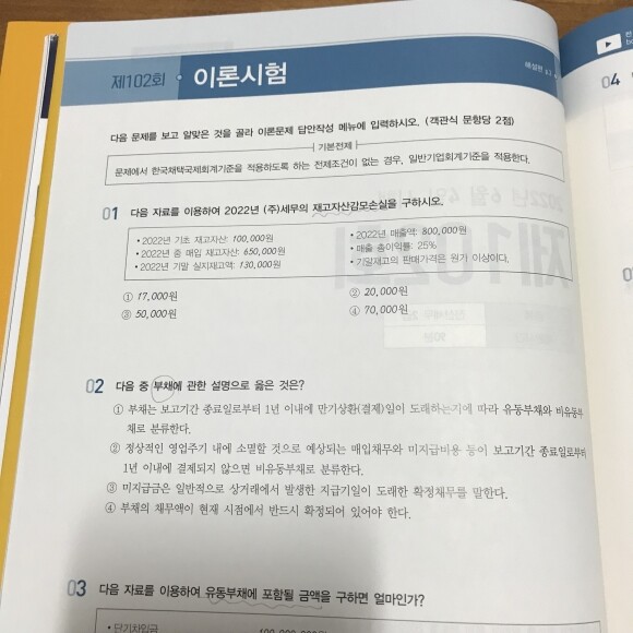 기출문제는 이론시험과 실무시험으로 나누어져 있는데요이론 문제는 15문제로 빠르게 문제를 풀고 실무로 넘어가셔야 되세요시간이 부족하실 수 있어서 시간을 타이머로 재고 실제 시험처럼 기출문제를 풀어야 돼요.