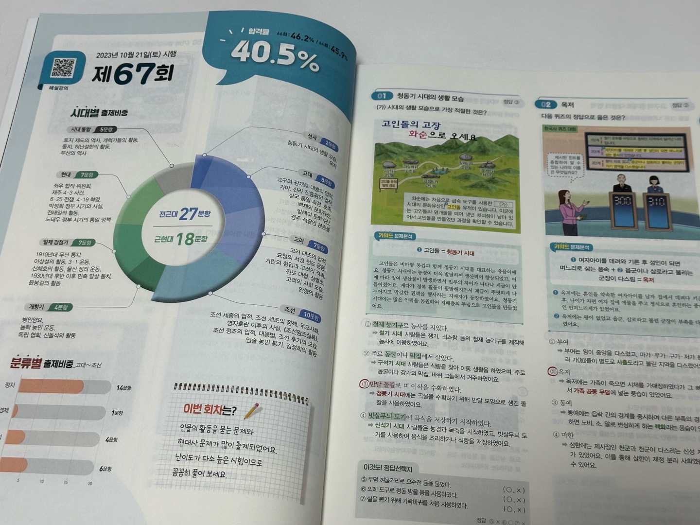 워낙 자격증 시험 준비할 때 혜택까지도 상세히 체크하는데 에듀윌 한능검 교재에서는 최신 기출문제 해설을 무료로 제공해주고 QR코드로 한번에 학습가능한 점이 가장 좋았답니다. 에듀윌 한능검 책은 기출문제도 많이 수록되어 있어 한능검 시험 준비하기 좋으니 에듀윌 한능검 문제집으로 한능검 시험 준비해보시는거 추천드립니다