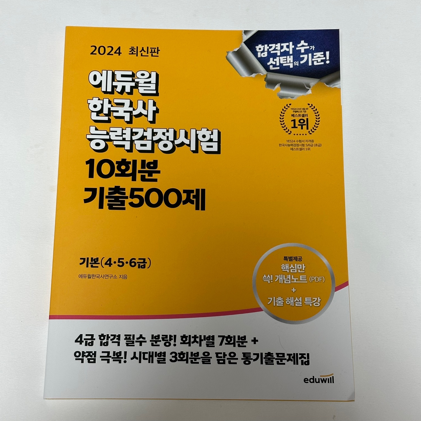 여기까지 에듀윌 한국사능력검정시험 교재로 한능검 시험 대비를 해봤는데요. 최신 화차별 기출문제 7회분과 시대별 기출문제 3회분이 추가로 구성되어 있어 시험 대비하는데 완벽하다고 생각이 들었습니다.