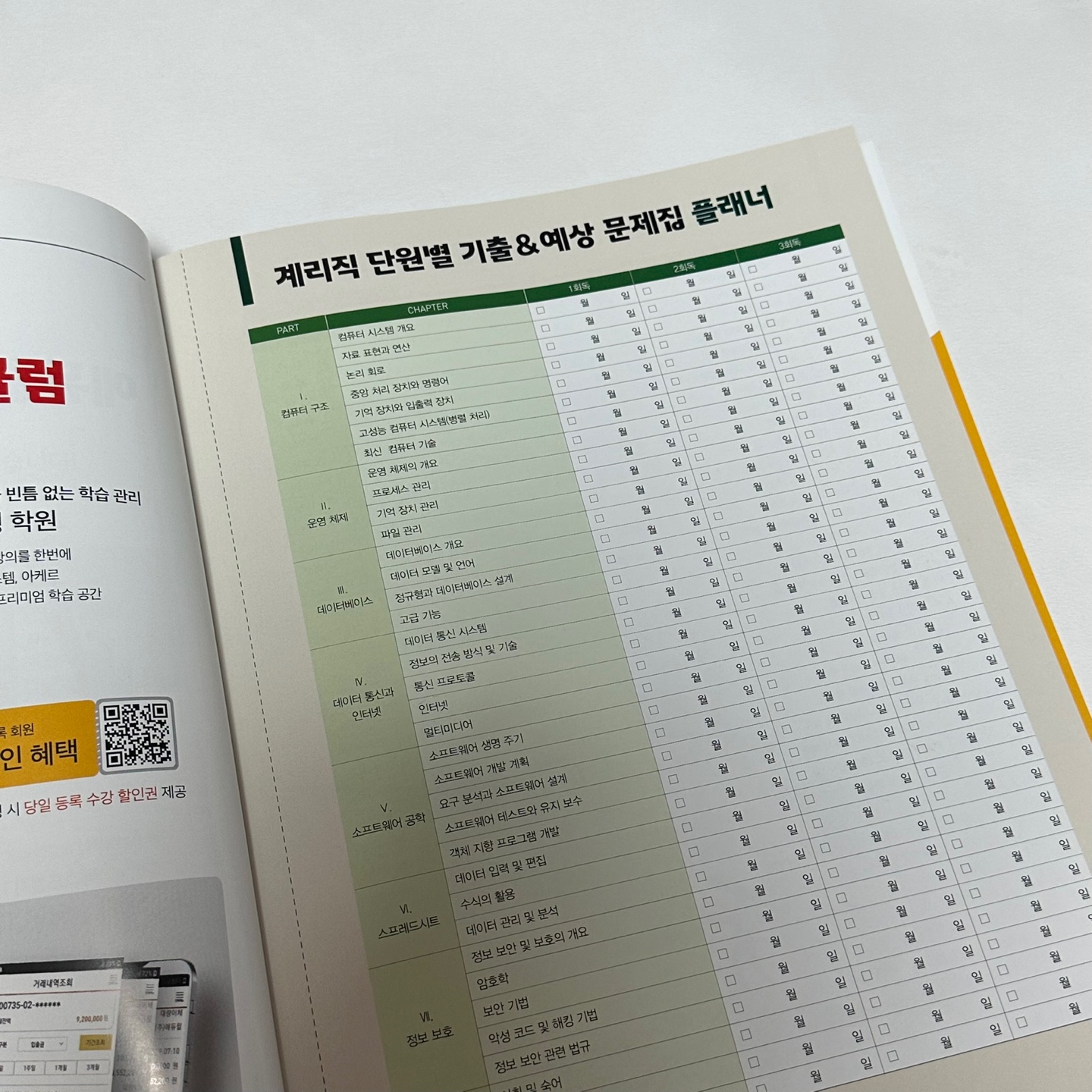 그리고 단원별로 회독하며 효율적으로 학습할 수 있도록 플래너와 약점체크표를 제공해줌으로 독학으로 시험 준비하는데 무리가 없다는 생각이 들었고, 취약한 부분은 점검할 수 있도록 약점체크표로 정리할 수 있어 유용했습니다. 또한, QR코드로 자동으로 채점할 수 있으며, 성적 결과와 취약점 분석까지 바로 확인 가능하니 계리직 공무원 시험 대비로 알차다고 할 수 있었습니다. 또한, 에듀윌 계리직 공무원 교재에서는 시험 출제경향까지 정리되어 있으니 이 부분을 필독하셔서 공부하시면 시험대비로 유용하실겁니다.