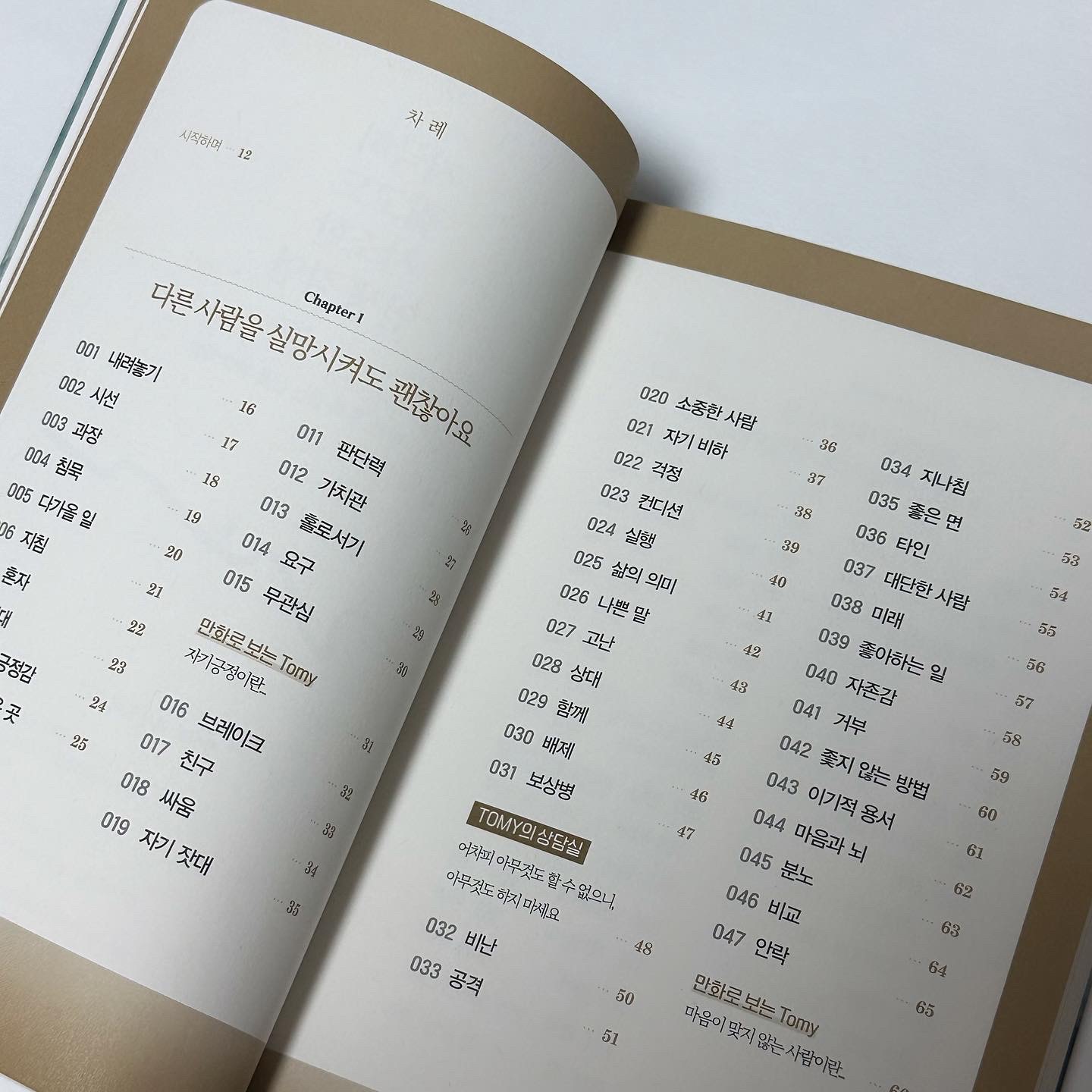 정신과 의사 토미가 15년 동안 수 많은 환자들과 상담을 하며 쓴 글로 요즘 우울감을 느꼈는데 도움이 많이 되었습니다. 사람관계가 참 힘들었는데 이 책을 통해 내려놓음을 배울 수 있었고, 긍정적 마인드를 만들기 위해 노력중에 있습니다.