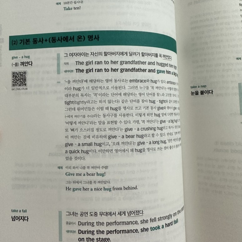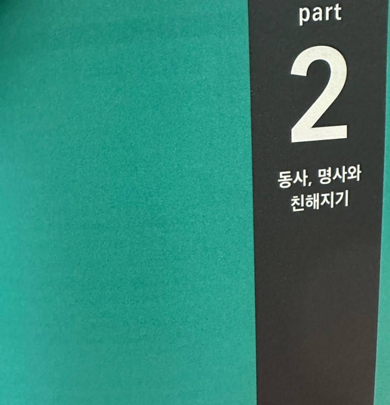 이번에는 Part 2의 동사, 명사와 친해지기 전체 챕터를 학습했는데요. 먼저 Chapter 5 부터 공부해 봤습니다.  Chapter 5에서는 [동사+명사] 간 궁합을 모르면 평생 엉터리 영어 챕터에서는 ① 찰떡궁합인 [동사+명사] 에 대해 설명되어 있고, ② 기본 동사+(동사에서 온)명사 에 대해 설명되어 있습니다.