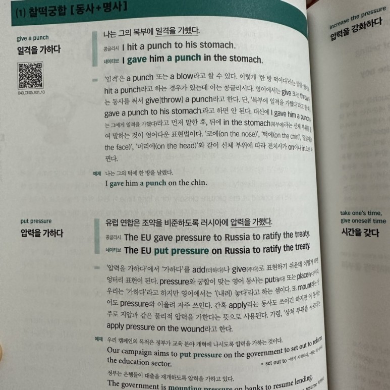 그리고 참고로 『네이티브 영어표현력 사전』 교재에서는 QR 코드를 통해 모든 네이티브 문장과 예제를 원어민이 읽은 MP3 음원을 제공해주니 이를 통해 공부하시면 학습하는데 도움이 많이 되실겁니다.