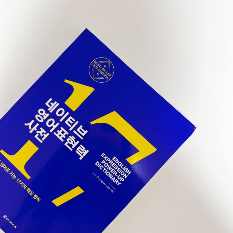『네이티브 영어표현력 사전』 영어 책 입니다. 딥블루 컬러가 굉장이 예쁘게 느껴졌어요. 『네이티브 영어표현력 사전』 영어 책은 콩글리시와 네이티브 표현의 차이를 결정하는 17개 영어 표현법을 체계적으로 정리했습니다.