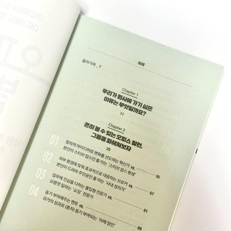 오피스빌런의 유형 8가지에 대해 설명되어 있는 챕터