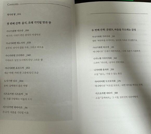 『도시와 빛축제』 책은 5개의 챕터로 구성되어 있어요.