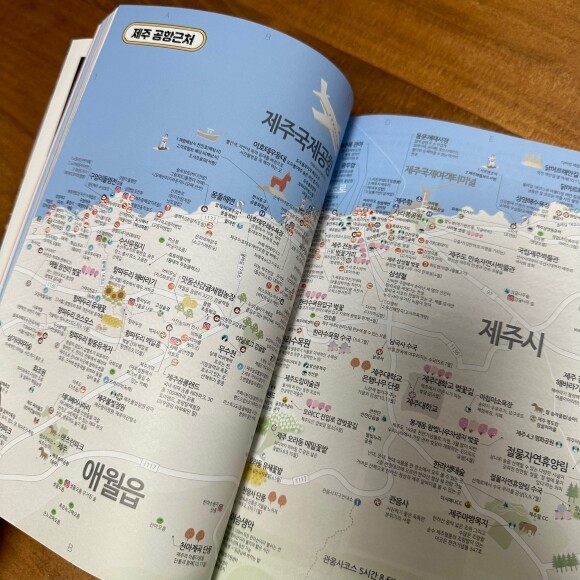 에이든 제주여행 가이드북은 테마별로 제주에서 사올만한 것들, 제주에서 먹어야 할 음식, 제주에서 꼭 봐야되는 꽃, 인스타 스팟 등 다양한 주제별로 정리되어 있어 제주도 여행계획시 유용하게 사용하실 수 있어요. 또한, 지도에 상세한 여행지 정보가 담겨 있어 지도 위에서 여행지를 고를 수 있어서 좋았어요.