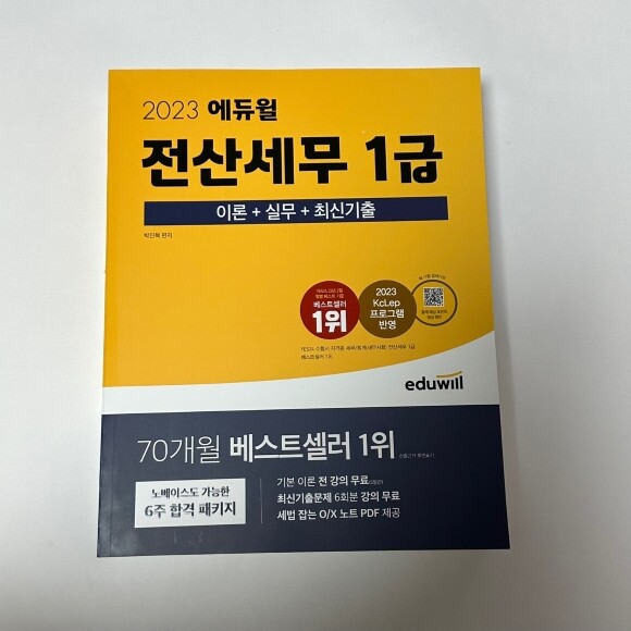에듀윌 전산세무 1급 교재는 체계적인 교재 구성으로 전산세무1급 독학으로 준비하기 제격인 교재 중 하나인데요. 에듀윌 전산세무 교재 한 권만 구입해도 전산세무 자격증 취득이 가능하도록 다양한 혜택이 제공되어 독학으로 시험 준비하기 좋았어요. 먼저 에듀윌 전산세무 1급 교재 혜택에 대해 알아보도록 하겠습니다.