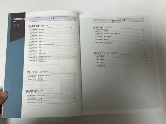 에듀윌 전산세무 목차인데요. 이론과 실무+최신기출로 구분되어 있어요. 에듀윌 전산세무 책은 PART 1 - PART 3(재무회계/원가회계/세법)까지는 중요한 이론을 다루고 있고, PART 4는 실무, PART 5는 최신기출문제로 구성되어 있어요.