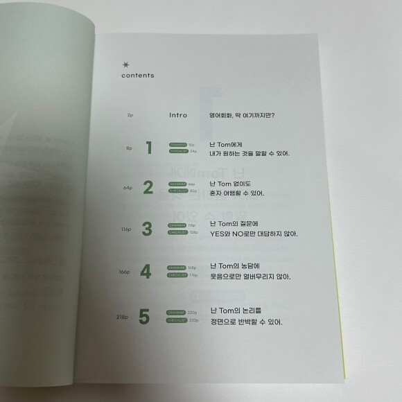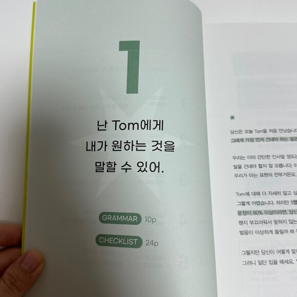PART 1은 "나는 Tom에게 내가 원하는 것을 말할 수 있어." 파트인데요. 가장 쉬운 영어부터 어려운 응용 표현까지 파트별로 구성되어 있어요.