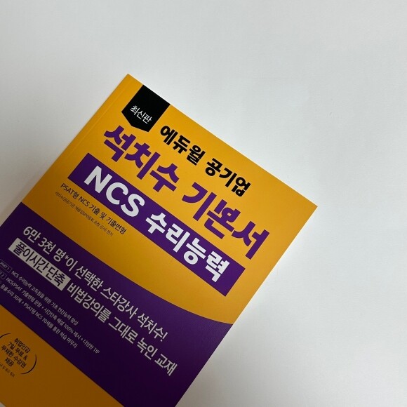 요즘 NCS 준비하느랴 정신없이 보내는데요. NCS 수리능력은 석치수 강사님이 최고라는 얘기에 에듀윌 문제집으로 공부하게 되었어요. 그래서 오늘은 NCS 수리능력을 업그레이드 하기 좋은 교재 에듀윌 NCS 기본서 『석치수 기본서 NCS 수리능력』 책을 소개해드리도록 할게요.