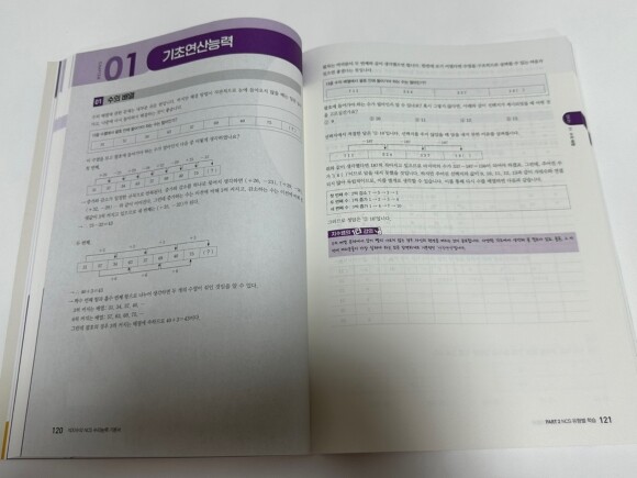 이 파트에는 기초연산능력, 기초통계능력, 도표분석능력, 도표작성능력 4개의 챕터로 나눠어져 있어요. 유형별로 3단계 문제풀이로 기본유형부터 고난도 문제까지 모두 섭렵이 가능하도록 구성되어 있어요. 이 3단계 학습으로 실력 업그레이드 하기에 좋고 고득점하기에도 좋았어요. 게다가 해설도 꼼꼼하게 잘 되어 있어 틀린 문제도 해설지 하나로 이해가 쉽게 된다는 점까지 너무 마음에 들었어요! 연습문제도 많이 수록되어 있어 시험 유형 익히기에도 좋고, 실전감각 키우기에도 훌륭했어요.