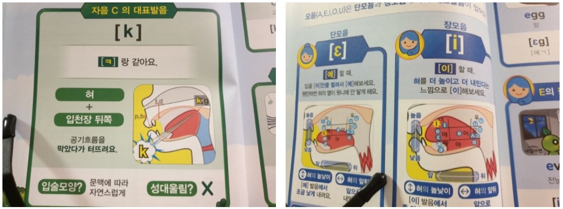 특히 이제껏 본 파닉스 영어교재 중 특이점은 이 발음마다 구강구조를 이미지로 표현해서