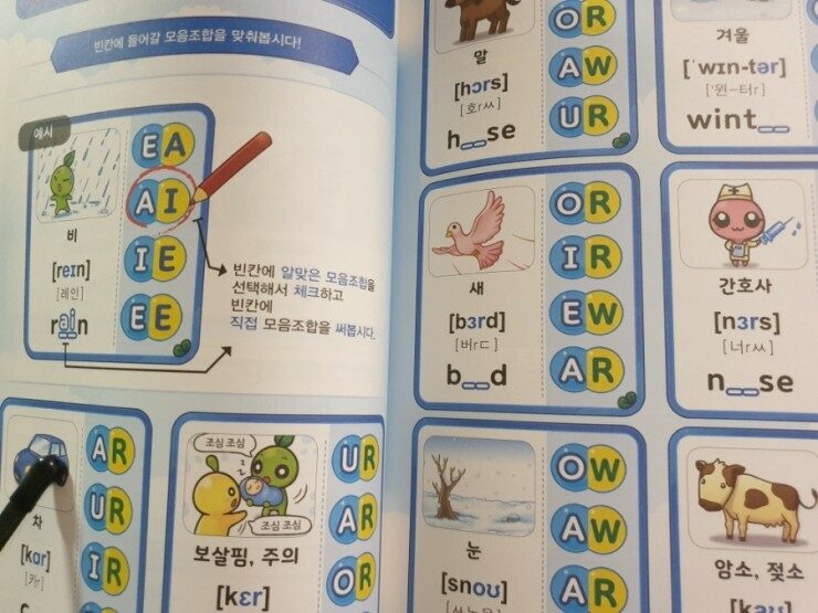3권에선 모음 조합으로 구성되어 있답니다.