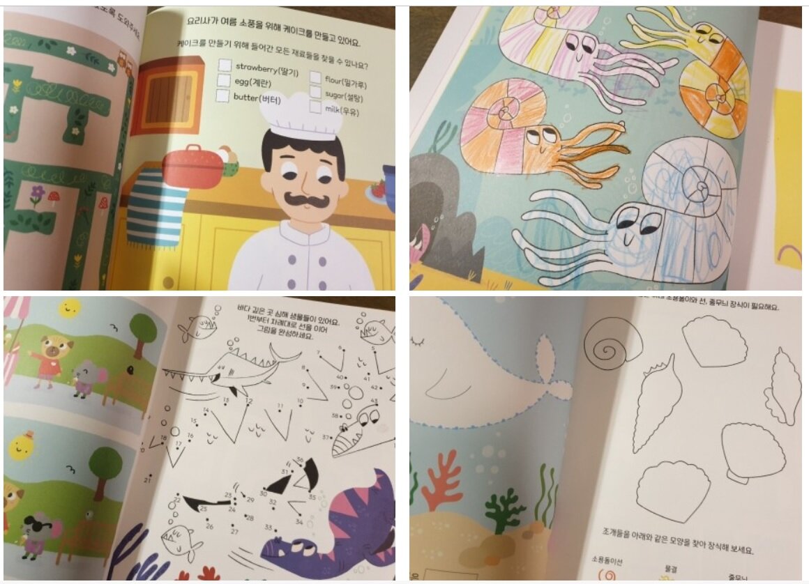색칠하기, 퍼즐, 미로 찾기, 숨은 그림 찾기, 그림 점 잇기,