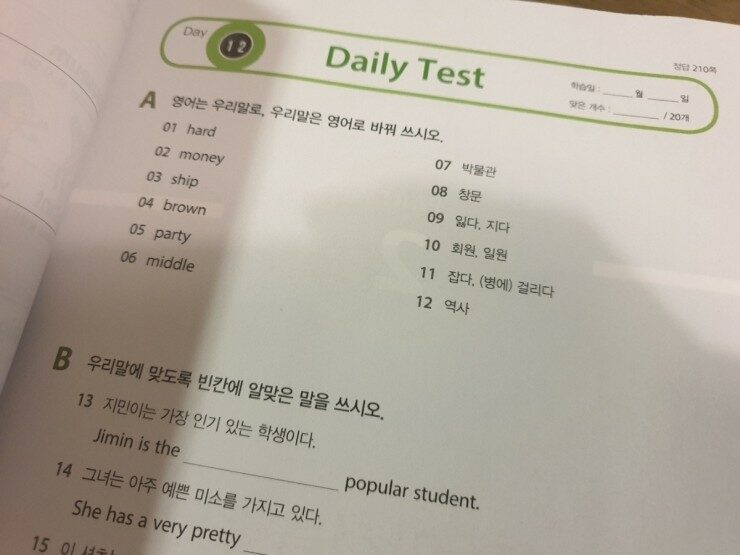 학습을 점검해 보는 Daily test로 세가지 유형의 문제로 되어 있어
