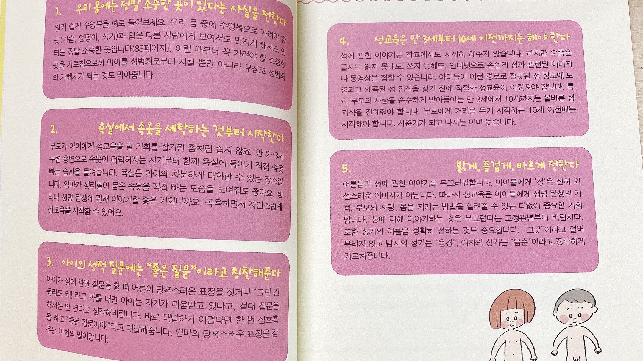바르게 성교육하는 5가지 원칙이 소개되어 있어요.