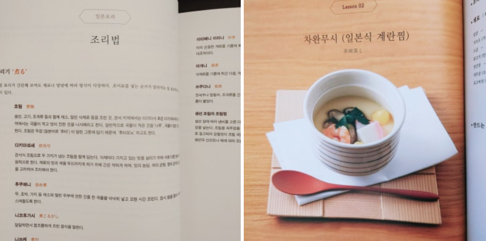 일본 요리학교 핫토리영양전문학교에서 전해주는 레시피 중 제일 먼저 배워보고 싶었던 부분은 아무래도 일본 요리에 대한 기본기를 다질 수 있는 것들이었습니다. 가쓰오부시와 같은 우리나라에서는 잘 사용하지 않는 다시류를 공부해보고 혼합 조미료도 배워보면서 일본요리에서 다양하게 적재적소에 쓰일 수 있는 비법들을 많이 알아갈 수 있었습니다. 각종 요리에 대한 영양성분, 조리 팁을 알 수 있었고 조리하는데 중요한 조리 과정이나 조리를 하는데 소요되는 시간, 재료 또한 꼼꼼하게 체크해보면서 요리를 준비해나가는 과정이 담겨있어서 친절한 레시피북이구나 싶었습니다. 우리나라 계란찜 스타일과는 전혀 다른 푸딩같은 질감의 일본식 계란찜의 이름이 차완무시라는 것과 그 조리법을 배워볼 수 있어서 신나고 즐겁게 알아가고 있습니다. 일본요리의 다양한 조리법을 전반적으로 이해하면서 하나씩 직접 만들어볼 수 있도록 레시피북을 활용하면 좋으니 이보다 간편하고 좋을 수가 없습니다.