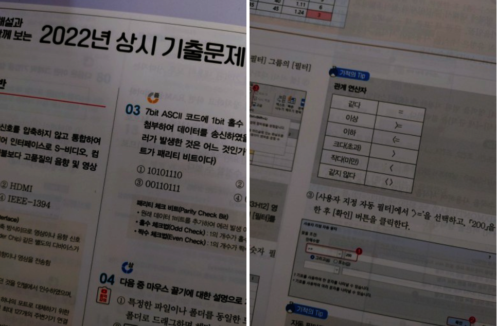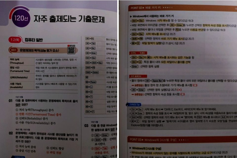 자주 출제 되는 기출문제 120선으로 먼저 공부하고 뒤에 이어지는 문제들을 풀다보면 중복되는 스타일도 만나면서 암기가 잘 되는데 기적의 Tip에서 공부했던 것이 정리가 잘되니까 좋더라구요. 자주 출제되는 기능들과 꼭 알아두어야 할 내용들을 꼼꼼하고 상세하게 알려주니까 책에만 의지해서 공부하다보면 뒤에 나오는 문제들도 척척 풀어내게 되더라구요. 효과가 끝내주는 문제집입니다.