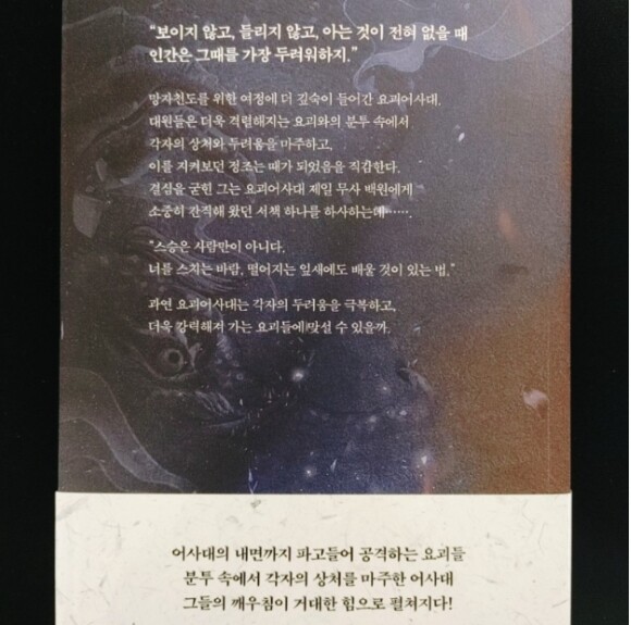 너무 재미있게 읽어서 뒤에 이어질 요괴어사 스토리가 너무도 궁금해집니다. 한호흡에 도파민 뿜뿜 즐겁게 읽기 좋은 설민석 작가의 장편소설 요괴어사2: 각성은 저만 읽기엔 아까운 소설이라서 역사를 좋아하시거나 판타지를 좋아하신다면 지금 당장 책을 들고 읽어보시는것을 강력 추천드리고 싶습니다. 판타지러버라면 누구나 금세 빠져들게 될 책이라서 후회는 없으실것 같습니다.