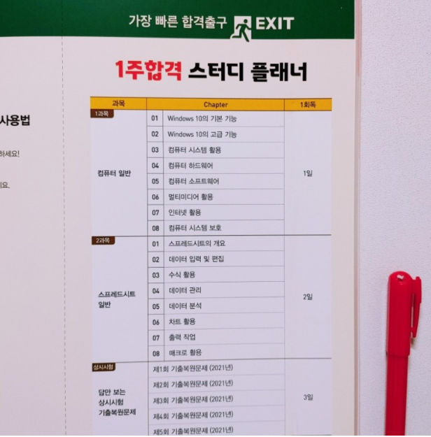 컴퓨터활용능력 2급 독학을 위해 스터디 플래너 활용해서
