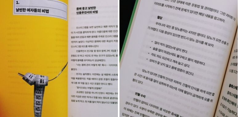 <그린 라이트 다이어트>를 읽으면서 건강에 대해 그동안 너무 내 몸을 혹사시켜왔다는 점과 혈당관리에 대한 부분에 대해서 더 진지하게 생각해보게 되었습니다. 건강과 아름다운 몸매를 얻기 위한 노력을 꾸준히 해서 앞으로의 인생이 아름답고 활짝 피어나길 소망해봅니다. 건강하고 늘씬한 몸매를 원하신다면 지속 가능한 현명한 방법이 가득한 <그린 라이트 다이어트>를 적극 추천합니다.